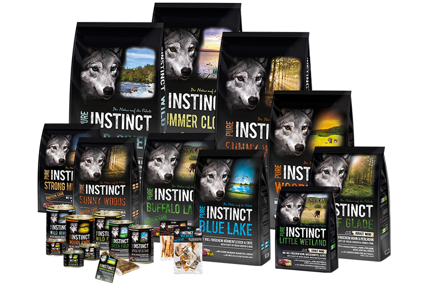 In der freien Natur leben Wölfe häufig im Rudel, das gemeinsam Beutetiere wie Lamm, Geflügel, Ziegen oder Wild jagt, sich gegenseitig schützt, zusammen die jungen Wölfe aufzieht und ihnen das Jagen beibringt. Bei Untersuchungen wurden im Magen des Wolfes außer Fleisch auch Wurzeln, Wildkräuter und Beeren gefunden. Die züchterische Bearbeitung des Wolfes, zu mehr als 400 Hunderassen, hat zwar Größen, Formen, Farben und gar Teile des Verhaltens verändert, nicht jedoch den Bau und die Funktion des Verdauungstraktes. Bei der Entwicklung von PURE INSTINCT hatten wir das Ziel, uns "auf die Fährte der Natur" zu begeben und haben diese ursprünglichen Zutaten in der Zusammensetzung verwendet.
